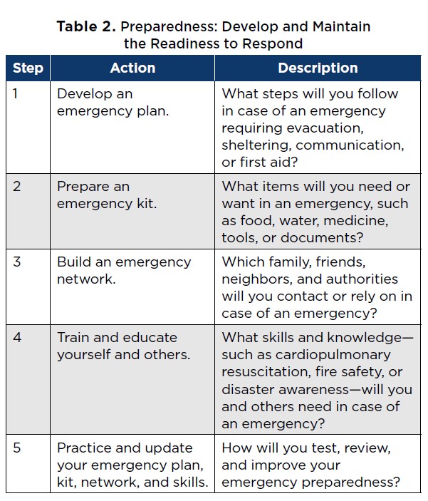 Being prepared for emergencies is not a one-time event; it is a continuous process that requires consistent thought, direct and specific planning, and practice.